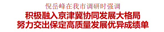 5月7日至8日,省委书记倪岳峰在我市调研。他强调,习近平总书记对河北人民、保定人民非常关心,2012年年底在阜平县看望慰问困难群众,向全党全国发出脱贫攻坚动员令。全省广大干部群众要深刻感悟习近平总书记的关心关怀,解放思想,真抓实干,积极融入京津冀协同发展大格局,深入实施乡村振兴战略,持续深化科技创新,高效统筹疫情防控和经济社会发展,努力交出保定高质量发展优异成绩单。