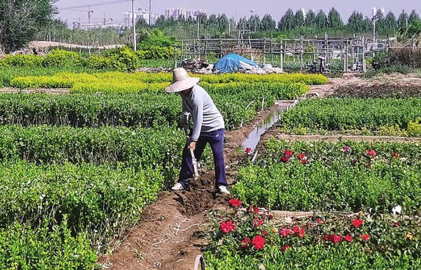 沧县肖庄子花圃园农民用运河水浇园