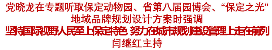 在听完汇报和发言后,党晓龙指出,保定动物园、省第八届园博会、“保定之光”地域品牌都是我市重点规划设计项目,是助力现代化品质生活之城建设、提升城市软实力的重要内容。全市各级各有关单位要通力合作、协调联动,加强与设计单位衔接沟通,要对标最高标准,高标准规划设计,充分汲取与会专家意见建议,进一步优化完善规划设计方案,充分彰显保定城市人民之美、生态之美、生活之美,努力在城市规划建设管理上走在前列。