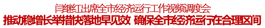 5月31日,我市召开经济运行工作视频调度会,深入学习贯彻习近平总书记重要讲话精神,全面落实全国稳住经济大盘电视电话会议精神和李克强总理讲话要求,认真落实省委、市委有关部署,分析研判经济形势,安排调度经济运行工作。市长闫继红出席会议并讲话。