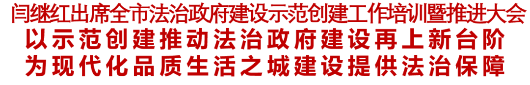 6月10日,我市召开法治政府建设示范创建工作培训暨推进大会,特邀省社会科学院专家进行专题培训,对2022年度法治政府建设示范创建工作进行动员部署。市委副书记、市长、市委全面依法治市委员会副主任闫继红出席会议并讲话。