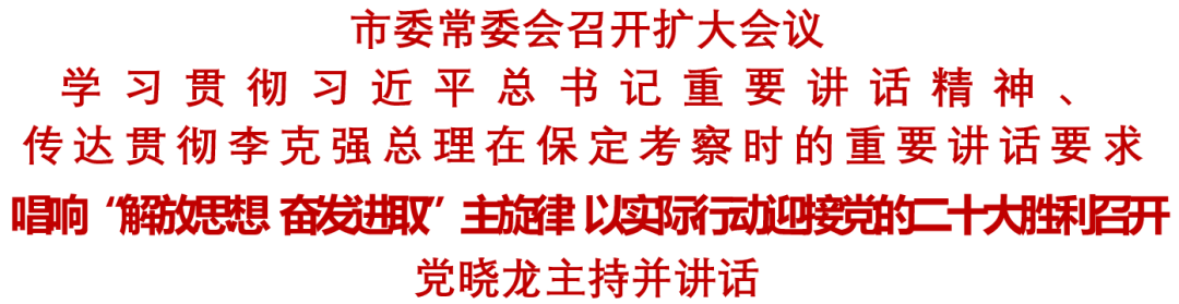 6月23日上午,市委常委会召开扩大会议,认真传达学习习近平总书记出席金砖国家工商论坛开幕式时发表的主旨演讲精神、中央全面深化改革委员会第二十六次会议精神,传达学习中共中央政治局常委、国务院总理李克强在保定考察时的重要讲话要求,研究我市贯彻落实意见。市委书记党晓龙主持并讲话。