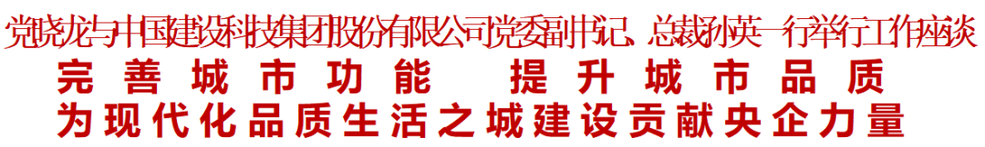 7月22日,市委书记党晓龙与中国建设科技集团股份有限公司党委副书记、总裁孙英一行举行工作座谈,双方围绕城乡规划建设、市政工程、未来社区、城市更新、绿色建筑、智慧城市、文化遗产保护等方面进行深入交流。党晓龙强调,要充分发挥央企主力军国家队作用,进一步完善城市功能,提升城市品质,为现代化品质生活之城建设贡献央企力量。
