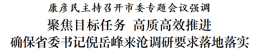 7月31日,市委书记康彦民主持召开市委专题会议,调度落实省委书记倪岳峰来沧调研要求进展情况,对下步工作再部署、再深化,确保各项要求逐条逐项落实到位。市委副书记、市长向辉,市委副书记张效春出席会议。