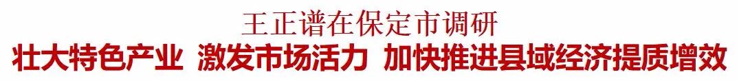 8月22日至23日,省长王正谱在保定市调研,强调要深入学习贯彻习近平总书记重要指示精神,全面落实省委十届二次全会部署,高效统筹疫情防控和经济社会发展,壮大特色产业,激发市场活力,加快推进县域经济提质增效。