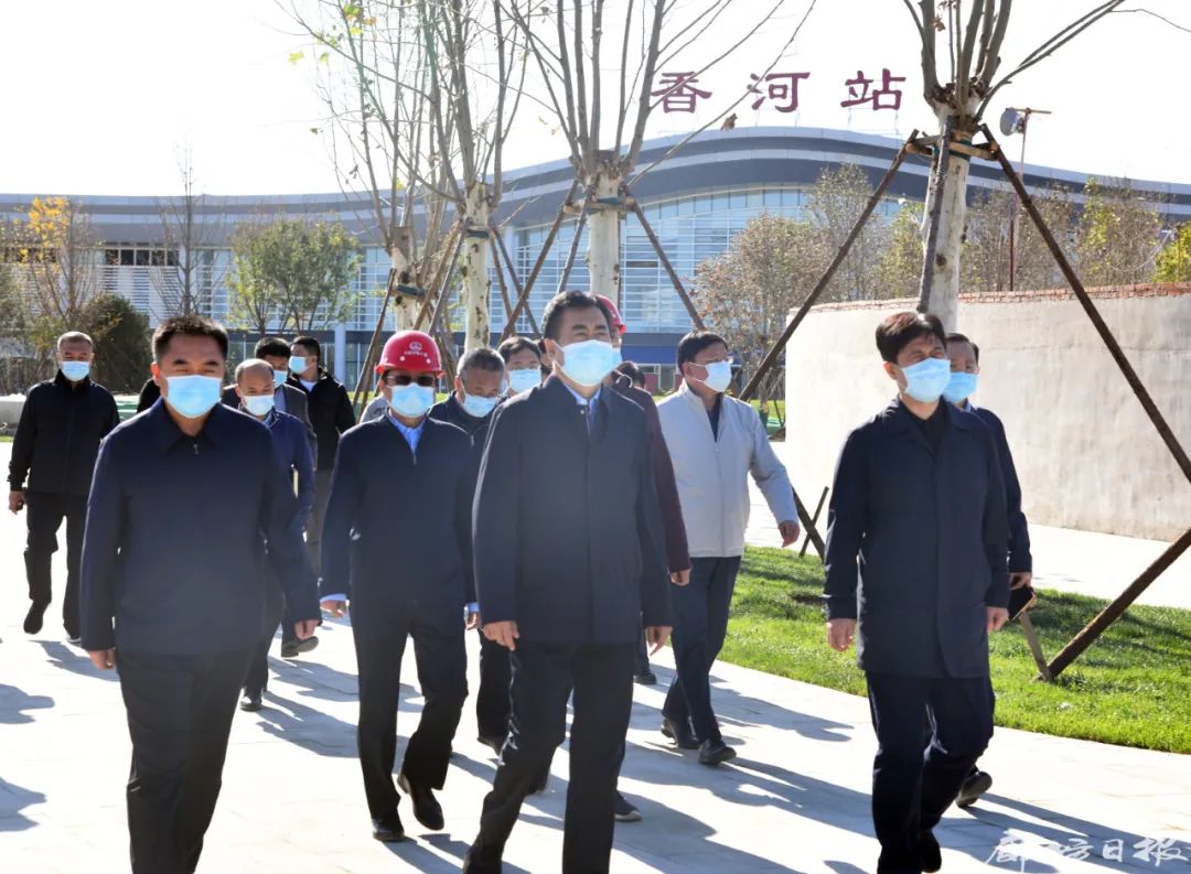 在香河高铁站前广场综合体项目现场,李国勇实地了解规划建设、项目进展等情况。他强调,要坚持科学规划引领,深入做好片区开发综合研究,进一步优化功能布局、完善基础设施,提升综合承载能力。要坚决抓好安全生产和疫情防控,加强施工人员车辆管理,及时消除风险隐患,在保证质量和安全的前提下加快建设进度。