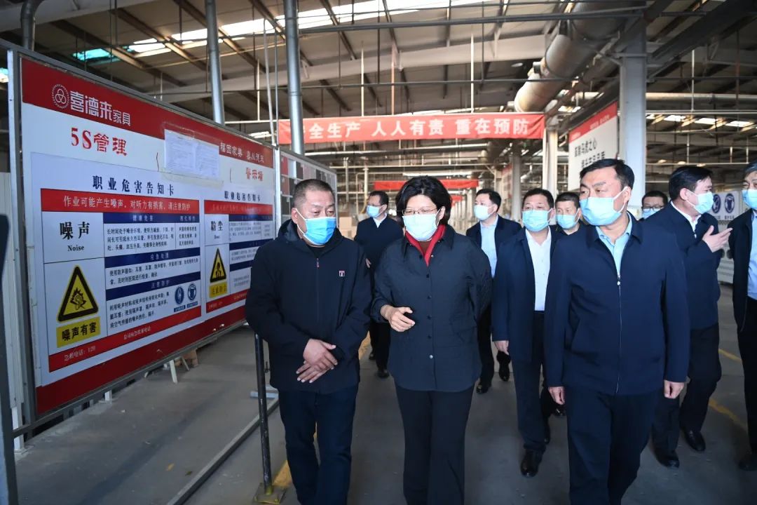 宋华英先后深入喜德来家具有限公司、强久集团有限公司,详细了解企业生产经营、疫情防控和安全生产情况。她强调,安全生产一失万无,要压实企业主体责任,强化安全生产教育培训,加强应急演练,让安全生产各项规章制度深入每一名企业职工心中。要强化部门监管,健全长效机制,加强巡查督查,及时发现整改安全隐患,坚决防范遏制各类安全事故发生。要立足特色产业集群优势,发挥行业协会桥梁纽带作用,积极引进国内外头部企业,加大产品自主研发力度,加快实现“产业倍增”,带动县域经济高质量发展。
