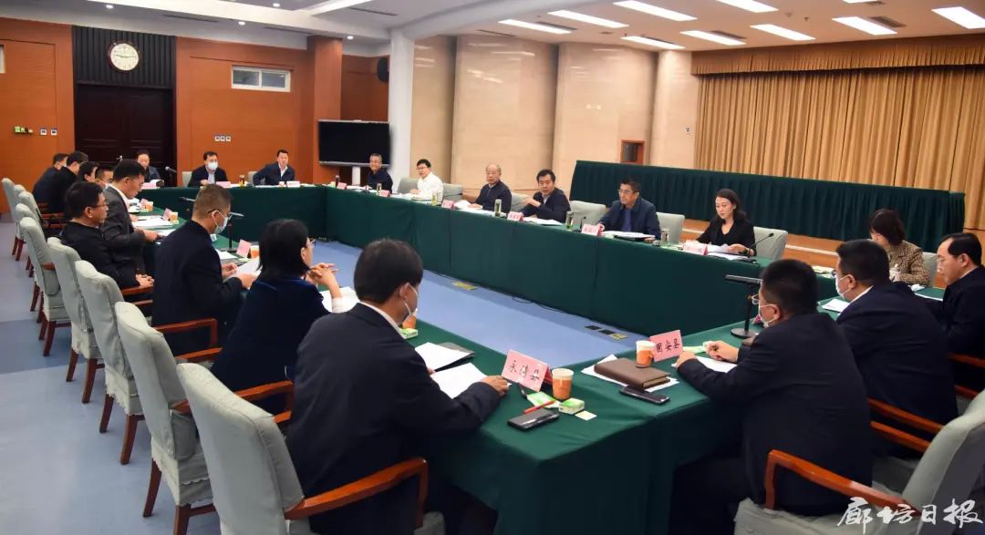 10 月22日,全市推动现代商贸物流产业发展工作暨2023年中国·廊坊国际经济贸易洽谈会(以下简称“廊洽会”)筹备工作调度会召开,听取相关工作汇报,研究各项重点任务推进落实举措,安排部署下步重点工作。市长李国勇主持会议并讲话。