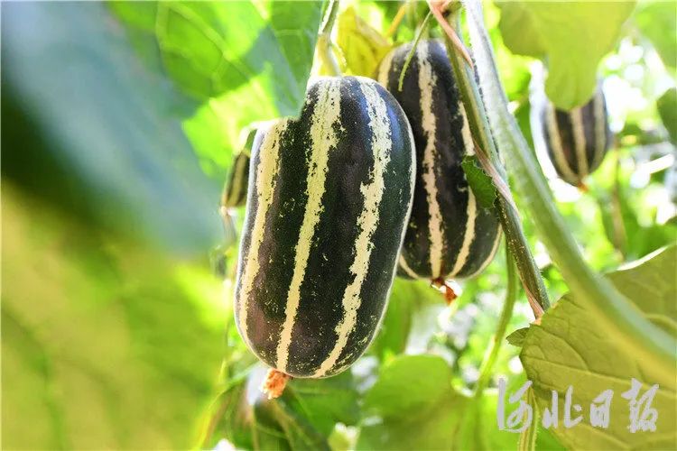 图为在廊坊市安次区仇庄镇宋王务村大棚内成熟的甜瓜。