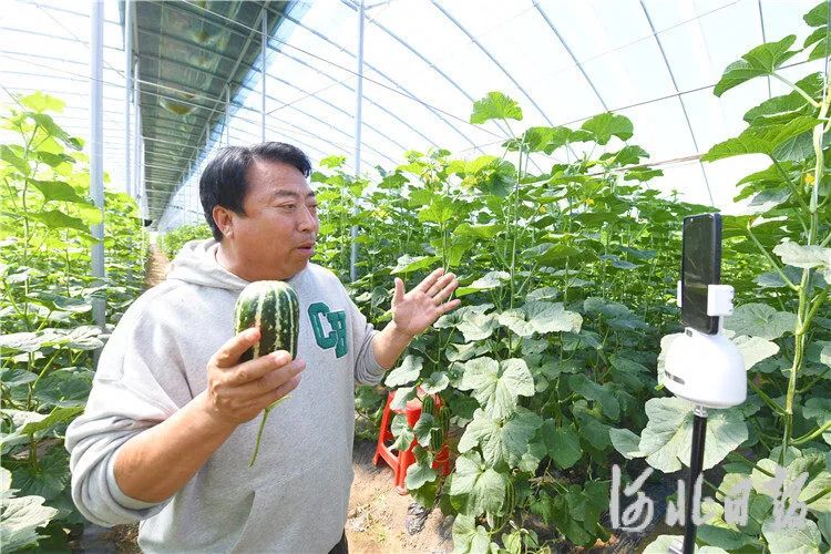 在廊坊市安次区宋王务村的甜瓜种植大棚里,村党支部书记魏志德正通过直播推介本村的特色农产品——“博洋9”甜瓜。“这个瓜特别甜,成熟度高,现场采摘口味更好,我给大家掰开一个看看……”一个三脚架,一部手机,每天早、晚两场直播,魏志德不仅对村内的特色农产品进行宣传推介,还为广大网友分享了村里的文化渊源、地域特色、旅游资源等,丰富的直播内容获得了众多网友的关注和点赞。