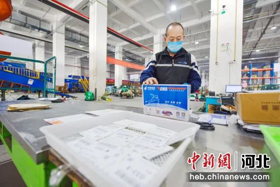 图为廊坊市广阳经济开发区中国邮政廊坊环渤海集散中心,工作人员为邮件进行整理。付瑞琪 摄