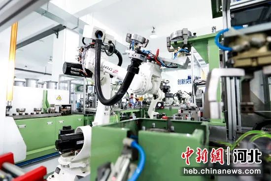 图为廊坊市广阳经济开发区金润科技集团,机械臂在生产线上进行作业。付瑞琪 摄