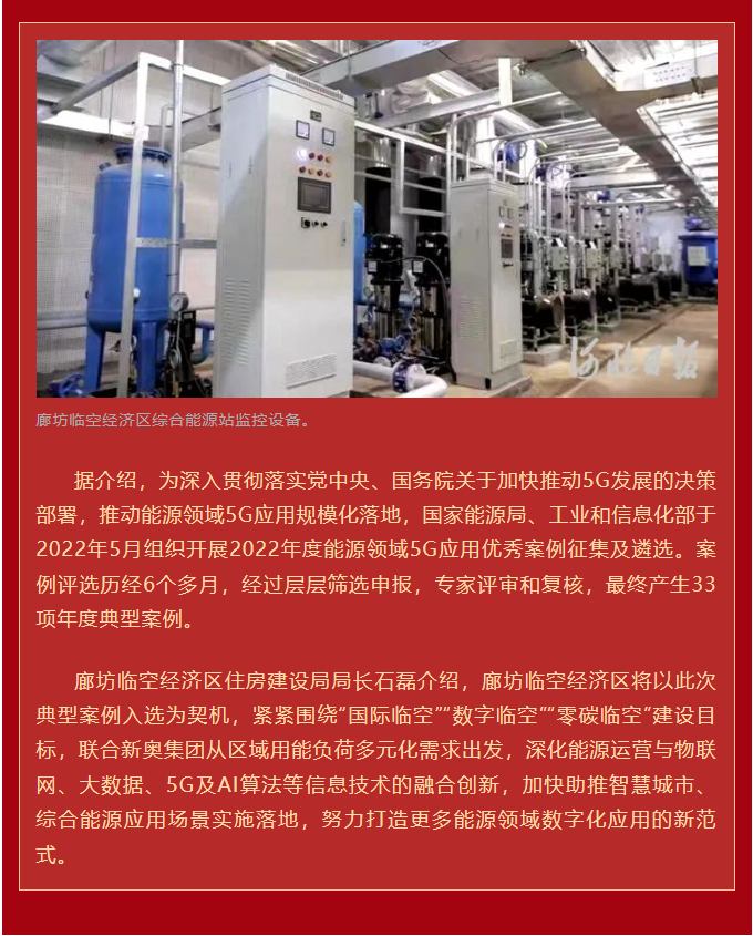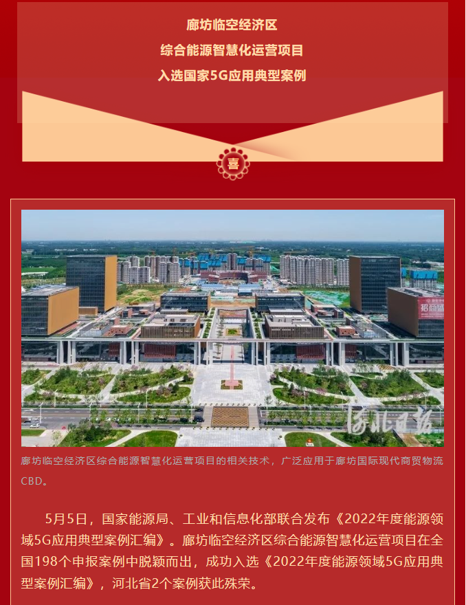 廊坊临空经济区综合能源智慧化运营项目入选国家5G应用典型案例