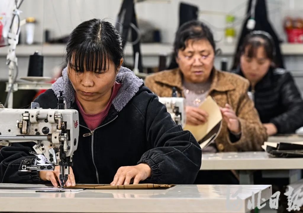 位于阜平县顾家台村的白沟九歌皮具有限公司,吸引了不少村中妇女就近就业。河北日报记者耿辉摄