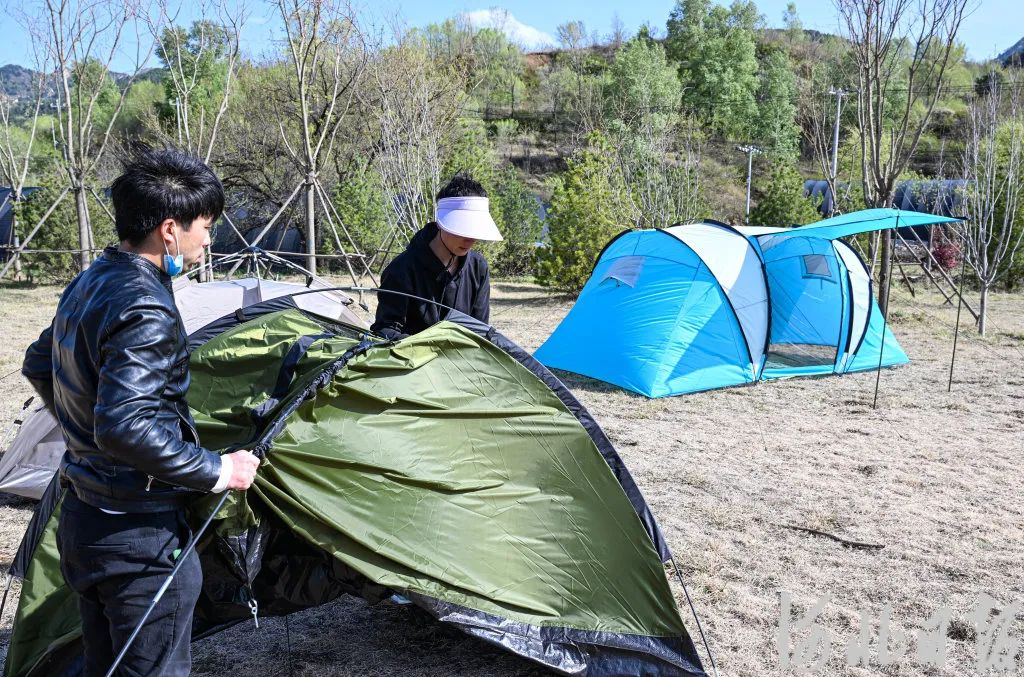 “在旅游、林果、食用菌、箱包加工等四大富民产业的基础上,顾家台村还在打造油牡丹种植基地、露营基地等项目,促进村民增收致富。”顾家台村党支部书记顾锦成介绍。4月30日,在顾家台村露营基地,该村村民顾仲霄一边搭建帐篷,一边介绍“取经”的结果。“4月29日,我又专门到北京考察。这次,我在北京朝阳公园考察了露营基地。在菜品方面,我也到大饭店进行了学习。我准备在顾家台做好露营基地,创下品牌。盈利方面,预计今年能够收回全部投资。”近几年,曾经在北京打拼10多年的他,参与引进了啤酒花园、亲子乐园等项目,得到了村民和游客认可。如今,他又看好露营基地项目,准备全身心投入。“按照规划安排,旅游旺季里,我们也将在露营基地组织音乐演出,进一步丰富村民的文化生活。”顾锦成说。