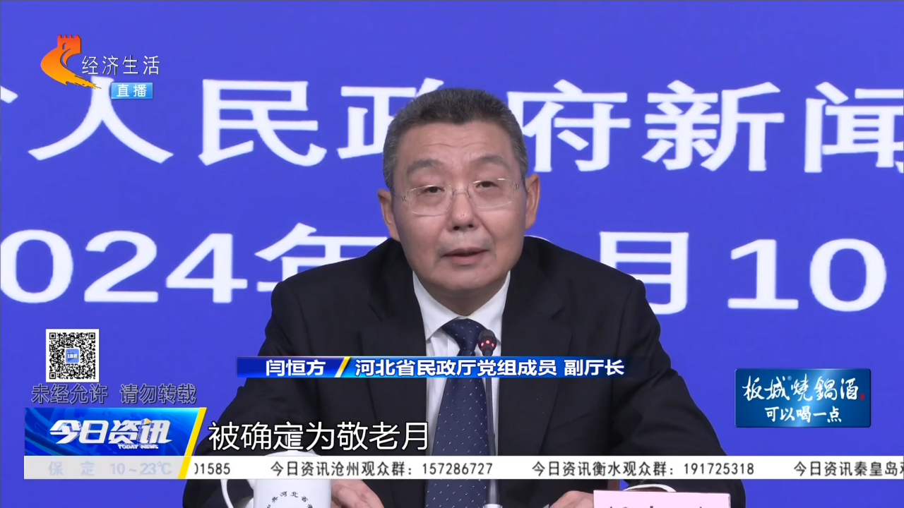 河北省于10月10日上午召开了积极推进老龄事业高质量发展新闻发布会,现场揭晓了我省老龄事业发展的新篇章。
