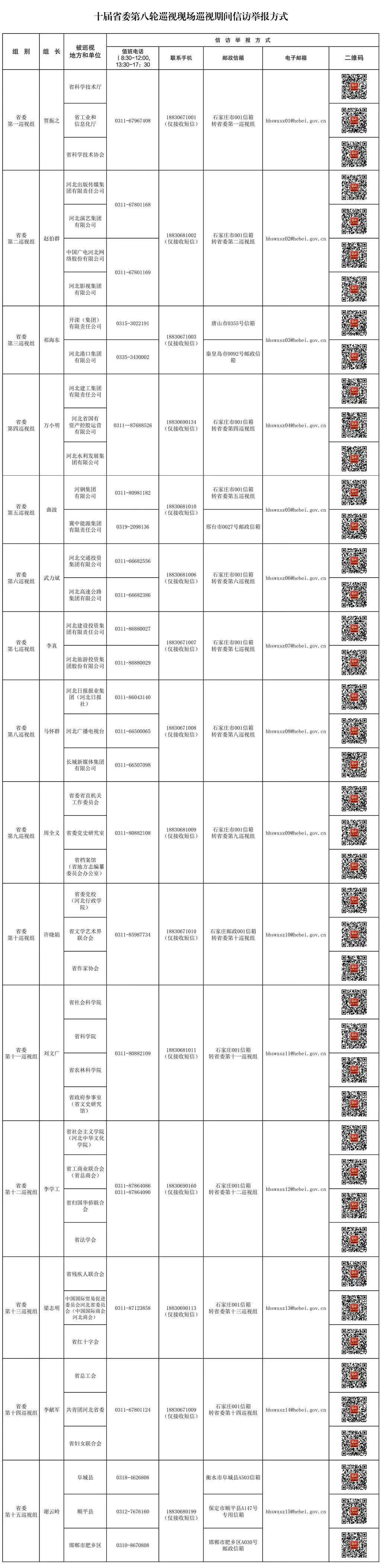 根据省委统一部署,截至4月13日,十届省委第八轮巡视完成进驻工作。15个省委巡视组将对25家省直单位党组织及16家省管企业党委开展常规巡视,对阜城县、顺平县、邯郸市肥乡区开展巡视“回头看”。