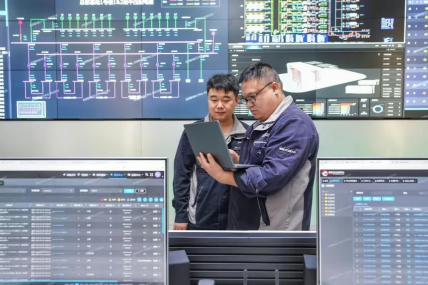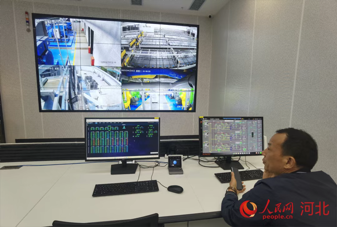 京津冀协同发展战略更为河北注入澎湃动能。作为北京非首都功能疏解的重要承载地,河北积极承接数据中心、算法研发等产业转移。2016年,张家口引入首家大数据企业后,迅速成长为国家级算力枢纽,如今投运服务器达172.24万台,并支撑了“双十一”千亿成交额、卡塔尔世界杯直播等全球级算力需求。秦淮数据工作人员在总控中心查看设备运行情况。陈亮摄