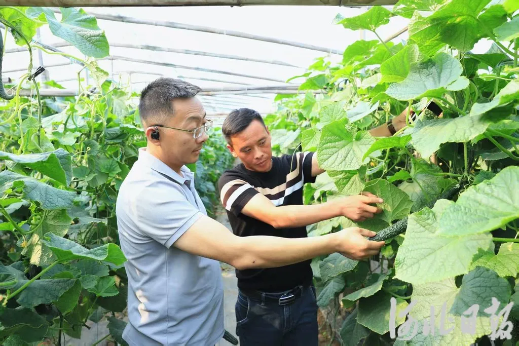 随着京津冀协同发展战略向纵深推进,河北凭借不断勃发的新兴产业与持续释放的政策红利,逐渐缓解人口净流出状态,近年来,河北籍人才从京津等地回流现象愈加明显。5月26日下午,河北省邦田农业服务有限公司负责人姬京建(左)到石家庄市藁城区一处蔬菜基地查看蔬菜长势,为后期收购做准备。 河北日报见习记者 冯依凡摄