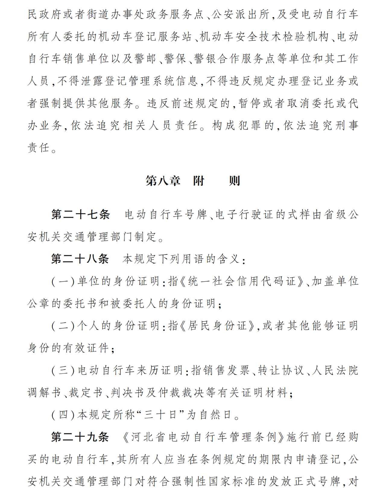 为了规范全省电动自行车登记工作,《河北省电动自行车登记规定》近日公布。该规定自2022年5月1日起施行,有效期五年↓↓↓