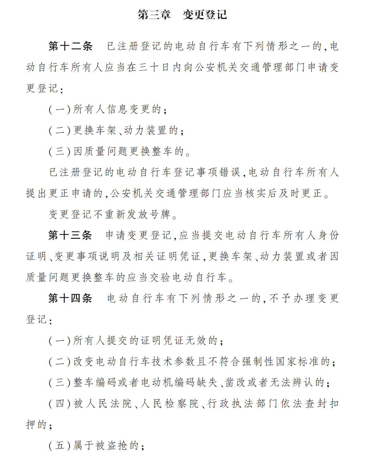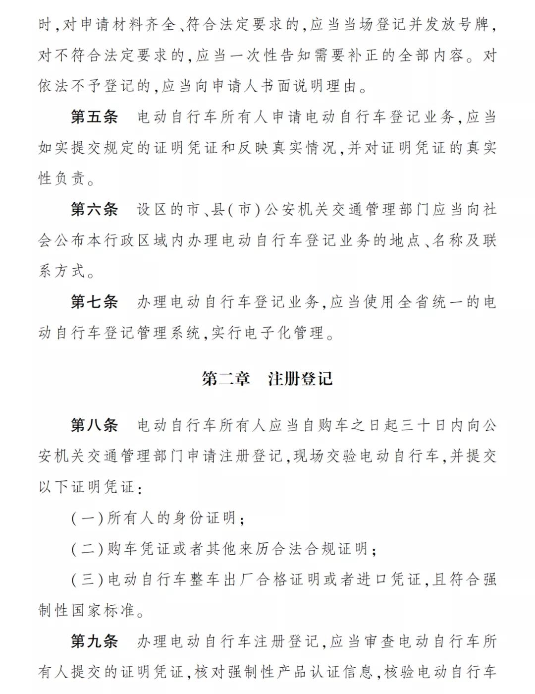 《河北省电动自行车登记规定》: 办理电动自行车注册登记,应当审查电动自行车所有人提交的证明凭证,核对强制性产品认证信息,核验电动自行车生产企业名称、品牌、型号、整车编码、电动机编码、出厂日期、车身颜色等,以及电动自行车所有人信息,符合规定的,录入登记管理系统,生成电子行驶证↓