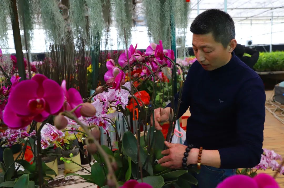 定兴县京雄农谷兰花基地内园艺师正在插画。保定日报记者 王栋 摄