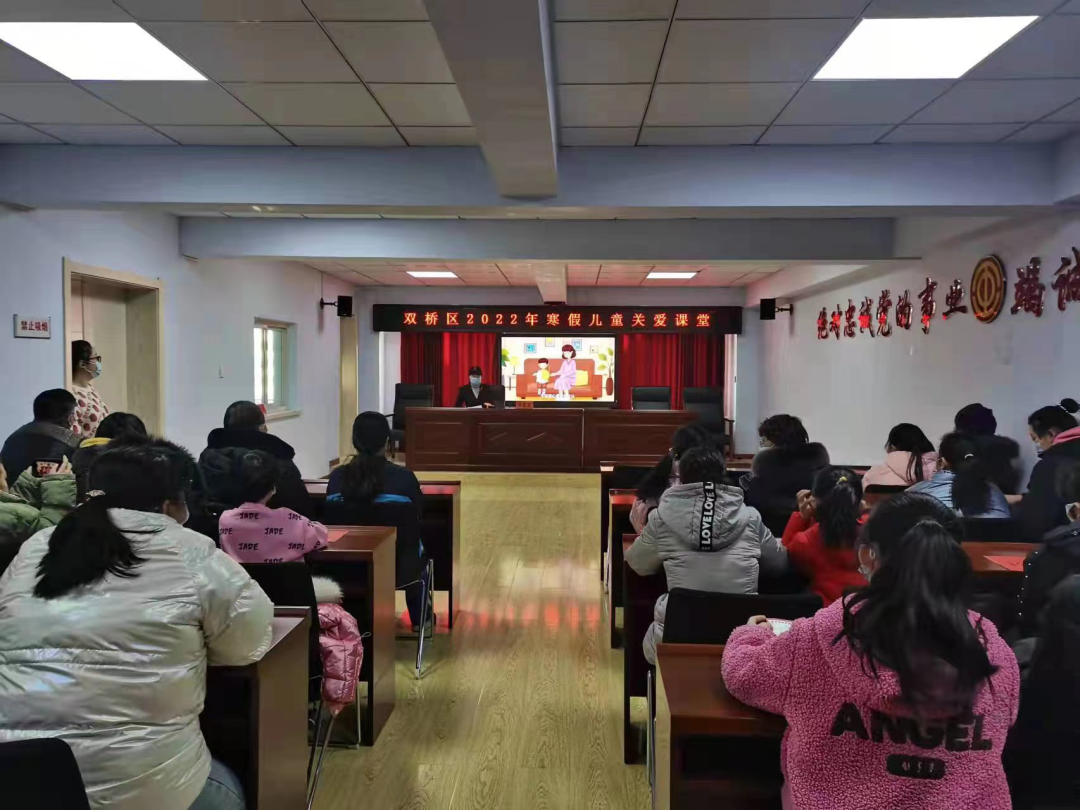 双桥区妇联开设了2022年寒假儿童关爱课堂,通过对儿童主要心理特点和怎样引导家长结合儿童的心理特点安排好孩子们的假期学习生活两方面内容进行详细的解读,让孩子们利用假期时间,在完成学生全面发展的基础上参与各种活动,促进学生全面发展。