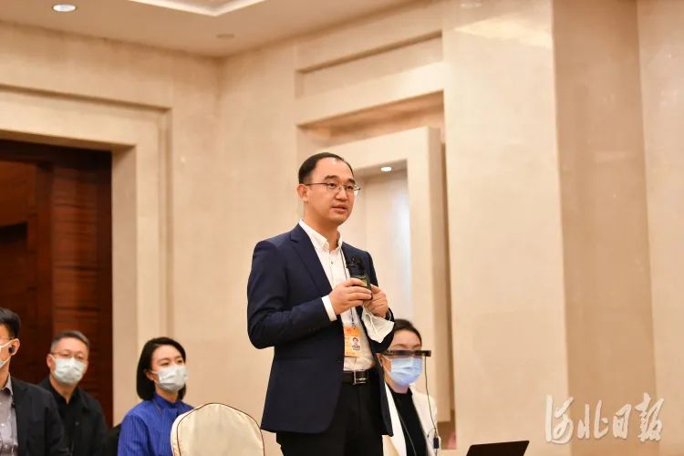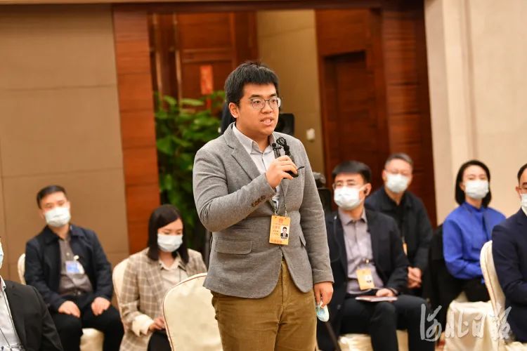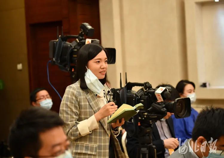 3月7日,十三届全国人大五次会议河北代表团举行新闻发布会。图为河北日报记者现场提问。河北日报记者赵威摄
