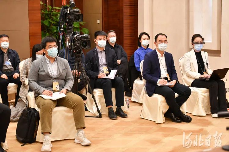 3月7日,十三届全国人大五次会议河北代表团举行新闻发布会。图为记者现场提问。河北日报记者赵威摄