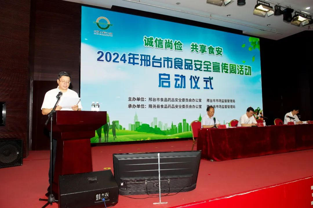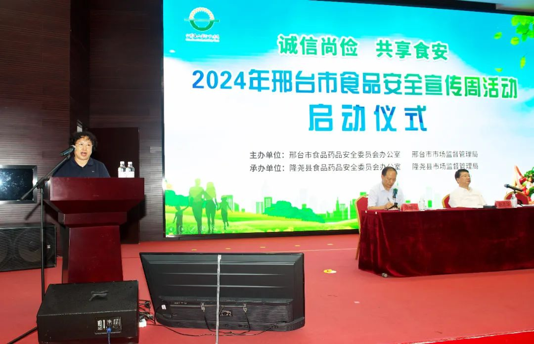 启动仪式上,隆尧县县委副书记、县长段洪波致辞,市食药安办副主任、市市场监管局二级调研员乔福山宣读全市食品安全宣传周活动方案,今麦郎食品股份有限公司代表我市食品生产经营单位进行表态发言,市农业农村局二级调研员李彩霞围绕食品安全宣传周主题发言。市食药安办主任,市市场监管局党组书记、局长赵志华宣布邢台市2024年食品安全宣传周活动正式启动。
