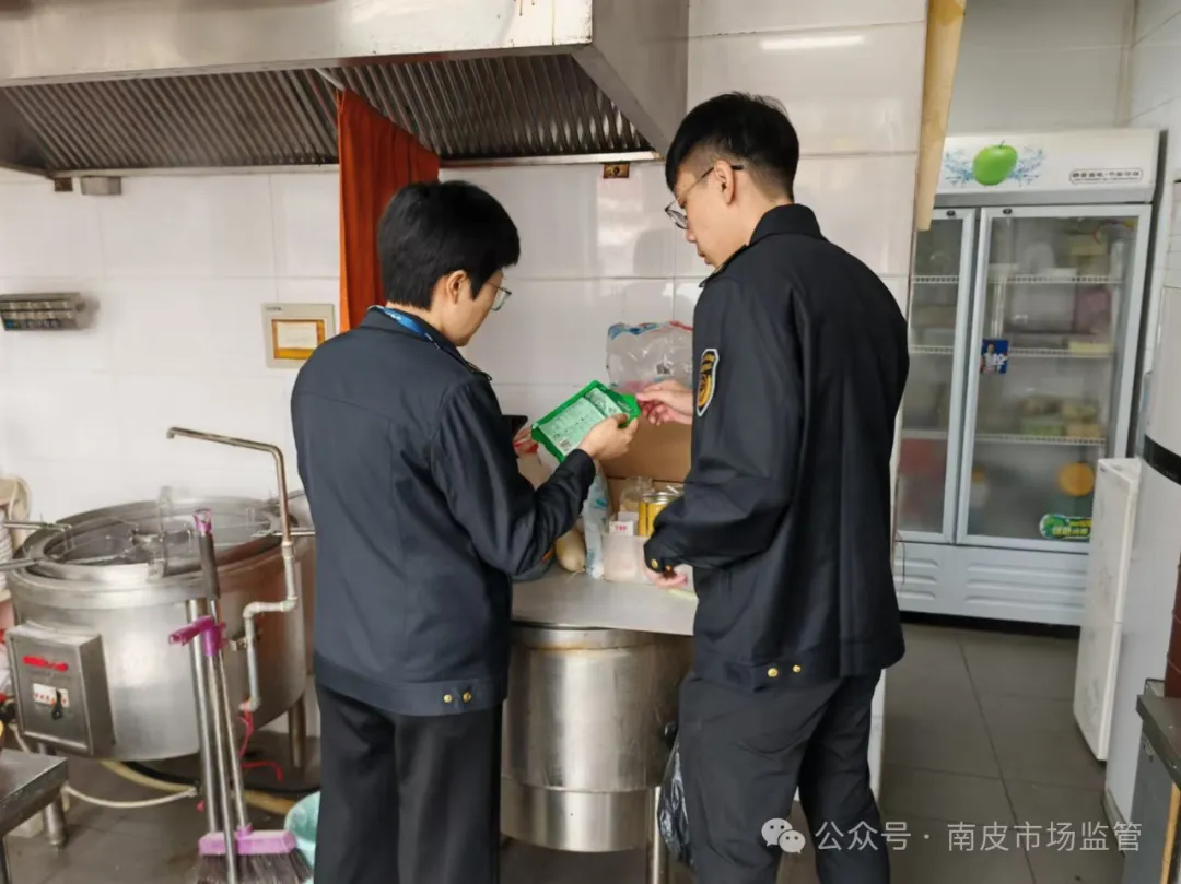 近日,深州市市场监管局组织开展校园食品安全检查工作。执法人员深入辖区各学校食堂,重点对食品原料采购与存储、食品加工流程、食品留样、餐具清洗消毒、从业人员健康管理及“三防”设施配备等情况进行了细致检查。针对发现的问题,执法人员现场提出整改意见,督促各学校负责人严格落实食品安全主体责任,强化食堂管理,确保师生饮食安全。(衡水市局微信公众号)