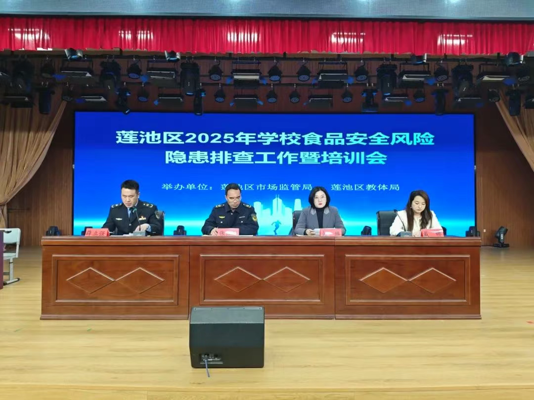 近日,保定市莲池区市场监管局组织召开了2025年春季学期学校食品安全隐患排查工作暨培训会。工作人员围绕食品安全法律法规、责任落实、日常管理、风险防控、应急处置等方面进行了深入讲解,要求各学校负责人切实履行主体责任,及时开展自查自纠,重点对食品采购储存环节、仓库储存条件、加工制作过程、餐饮具清洗消毒、从业人员健康管理等方面进行检查,以消除食品安全风险隐患。(保定市莲池区局微信公众号)