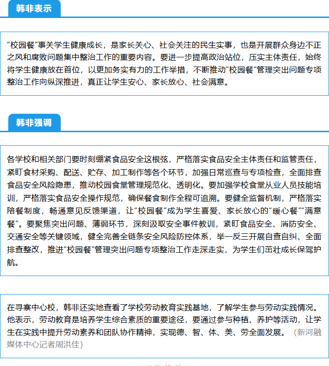 非先后到董振堂红军中学、河北新河中学、寻寨中心校,实地察看学校食堂操作间、仓储间、留样间等重点区域,详细了解学校食材采购、加工制作、环境卫生及餐费管理、餐品质量、师生就餐等食品安全责任落实情况,听取校园餐管理工作情况汇报.
