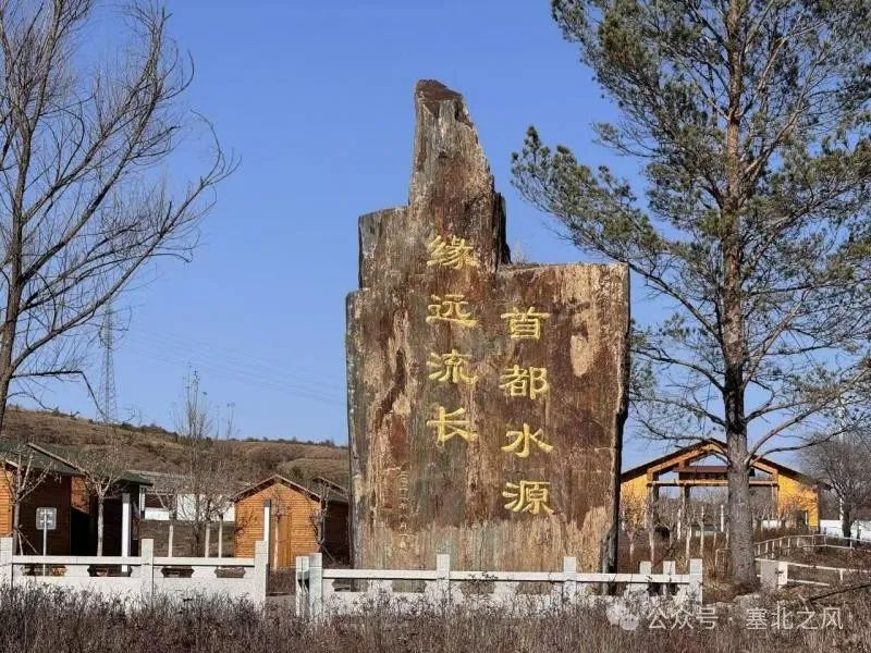 白河源景区位于沽源县小厂镇西湾村,藏于草原天路沿线。11月,这里褪去了喧嚣,一片宁静。漫步其中,亭台廊榭、小桥流水,古风雅韵扑面而来,泉水叮咚声不绝于耳。循声望去,在刻有“水润京华”的一座石碑下,九眼泉口不断汩汩涌出冽冽泉水,这里便是白河源头。白河,古称沽水,由这九眼山泉聚为一泓,向南奔流经云州水库、白河堡水库,最后注入密云水库。