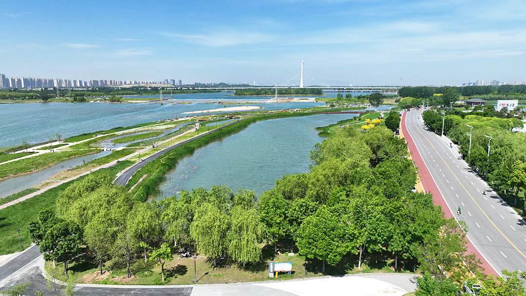 为了让市民游客能够更好地感受母亲河的风貌,该中心打造亲水观景线路,将体育大街至黄金沙滩2.6公里的木栈道提升为柏坡黄石材铺设的滨河观景路线,铺设了黄金沙滩至太行大街滨水木栈道6公里,增加了沿河观景亲水平台10个,利用木厂漫水桥、1号和3号潜坝打通了南北岸慢行通道,铺就了多视角多场景的环河亲水路网。其中,木厂桥漫水路粉刷一新,“跑道蓝”映衬在滹沱河水中间,宛如一条蓝色彩带横跨滹沱河南北两岸。木厂桥犹如一条蓝色彩带横跨滹沱河南北两岸。