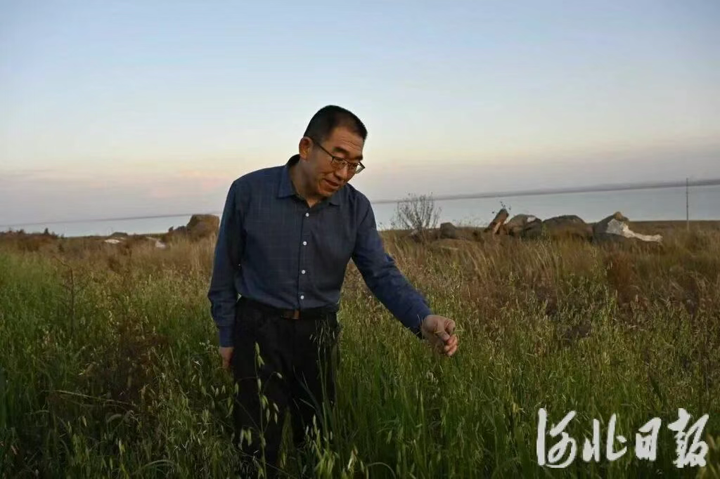 安固里淖干涸后,一场生态危机开始向周边蔓延。10月16日,张北县海流图乡农业助理程国会观察长势正盛的燕麦草。河北日报记者郭晓通摄