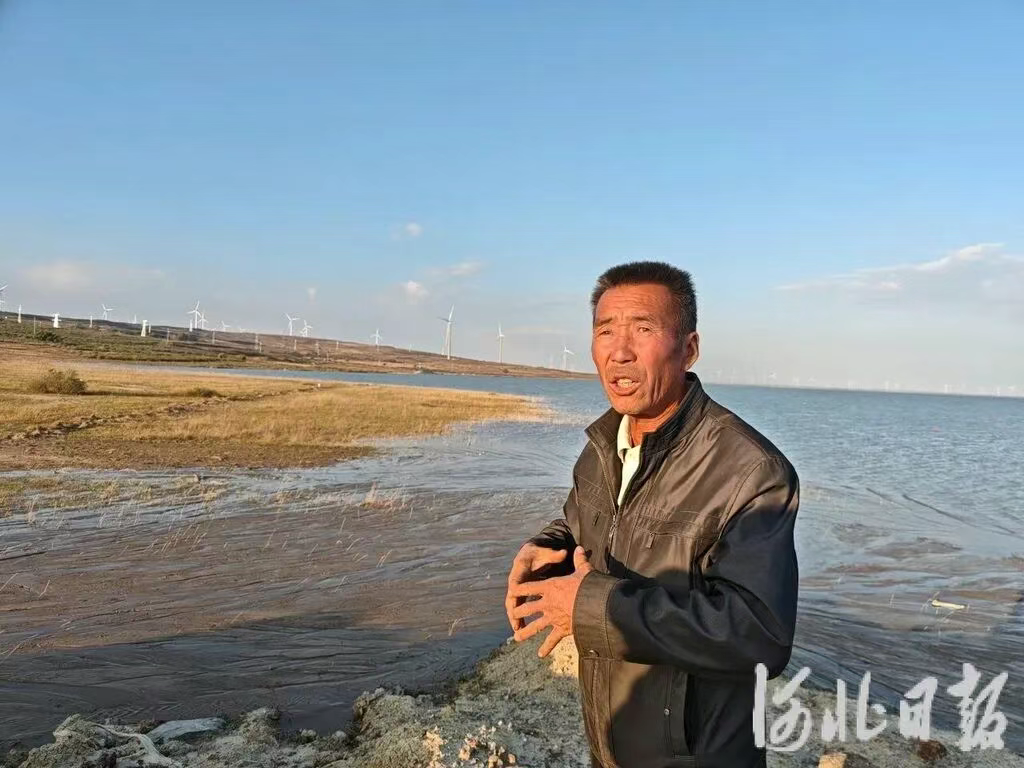 采访中,附近村民高兴地说,他们记忆中“风击水,浪拍岸,摇橹撒网捕鱼忙”的画面终于重新展现在眼前了。10月16日,张北县海流图乡邢地湾村村民张宏柱在安固里淖岸边,讲述水体恢复的过程。河北日报记者魏雨摄