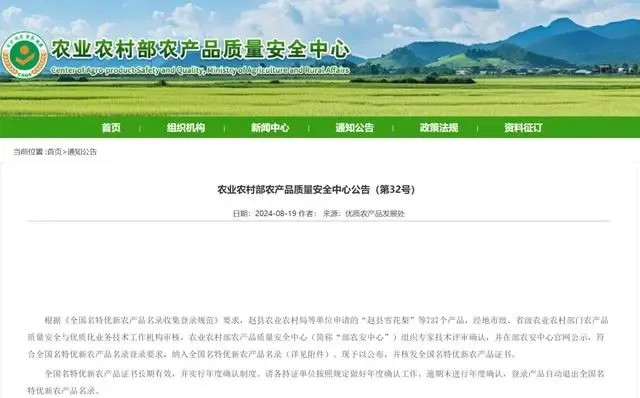 据了解,全国名特优新农产品,是指在特定区域内生产、具备一定生产规模和商品量、具有显著地域特征和独特营养品质特色、有稳定的供应量和消费市场、公众认知度和美誉度高,并经农业农村部农产品质量安全中心登录公告和核发证书的农产品。