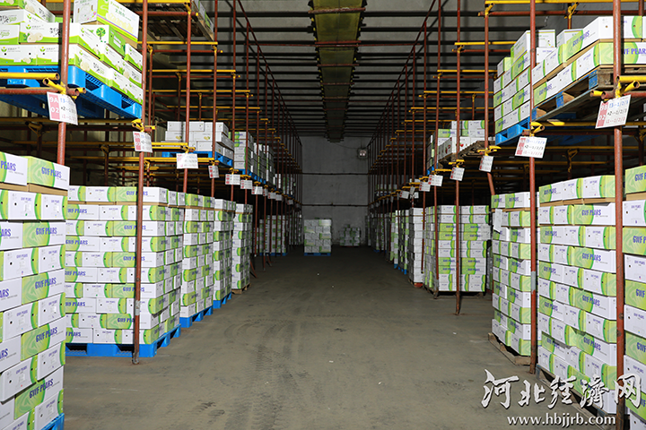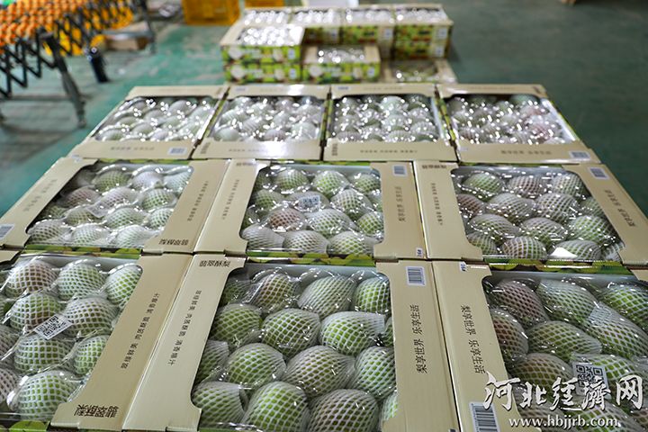 长城果品是国家级农业产业化重点龙头企业,经营皇冠、鸭梨、秋月梨等十几个品种的鲜梨,年出口额在1000万美元以上,主要销往美国、加拿大以及欧洲的高端市场。河北长城果品股份有限公司成箱包装好的鲜梨。河北经济日报记者 李佳琦 摄
