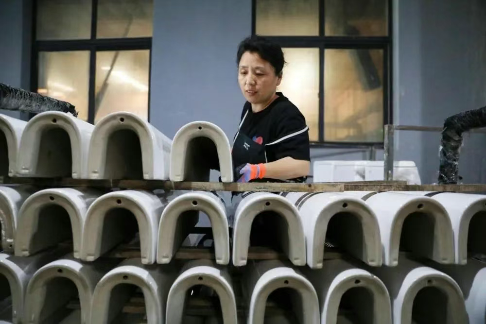 5月27日,在滦南经济开发区城西园区一家陶瓷制品企业生产车间,工人在忙碌工作。