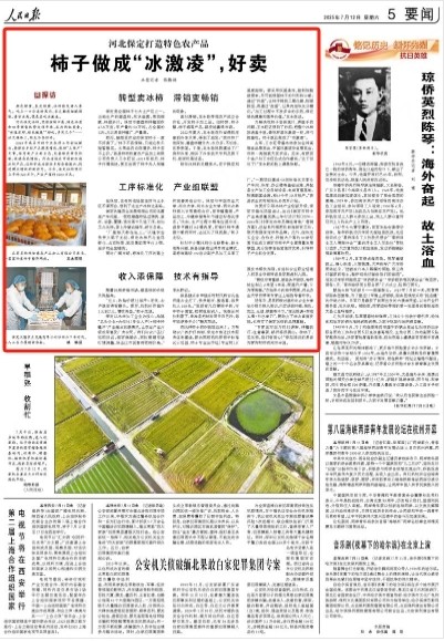 面对广阔市场,标准化工序的建立和完善势在必行。保定与中国农业大学、河北大学、河北农业大学、西北农林科技大学等高校合作,在种植管理、产品加工、冷藏存储等环节建立标准化体系。“比如,生产过程中精准控温冷冻,误差不超过0.5摄氏度,在锁住柿子清甜口感的同时,还延长了保质期。”郭子龙说。