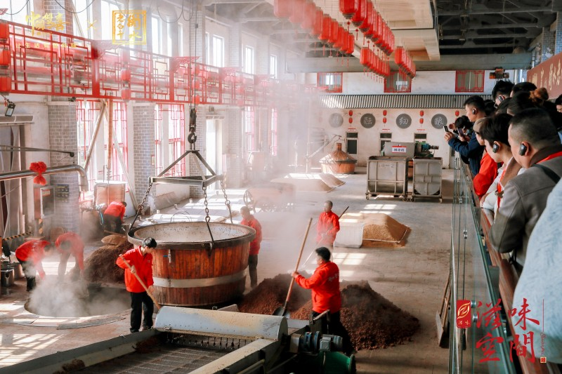 清晨的车队载着期待启程,为这场跨界之约拉开序幕。嘉宾们首先到达衡水老白干游客服务中心,在讲解员的带领下,沿着挂满照片的文化过道缓步前行,时光的纵深感在脚步间悄然铺展。行至八号工坊,千余个地缸在工坊内延伸成“缸阵”,每口缸壁都留存着经年发酵的酒曲痕迹。俯身轻嗅,醇厚粮香扑面而来,与双喜勿忘我不经意间透出的蜜果香轻触交织,竟先一步奏响了“醇甜共生”的序曲。