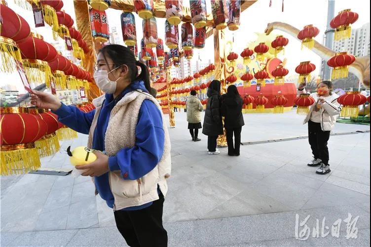 在河北省文安县红星美凯龙文化广场内,社区居民们正在饶有兴趣地参加“清风倡廉 猜灯谜”主题活动。