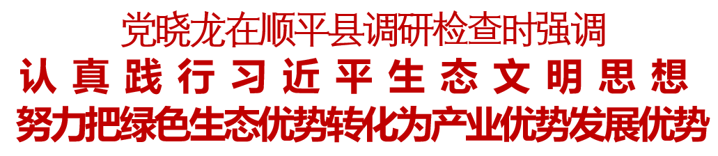 5月4日,市委书记党晓龙到顺平县,就文化旅游、乡村振兴、都市农业等工作调研检查。他强调,要认真践行习近平生态文明思想,落实党中央和省委决策部署,立足“山”“水”,做好文旅、农旅大文章,努力把绿色生态优势转化为产业优势、发展优势。