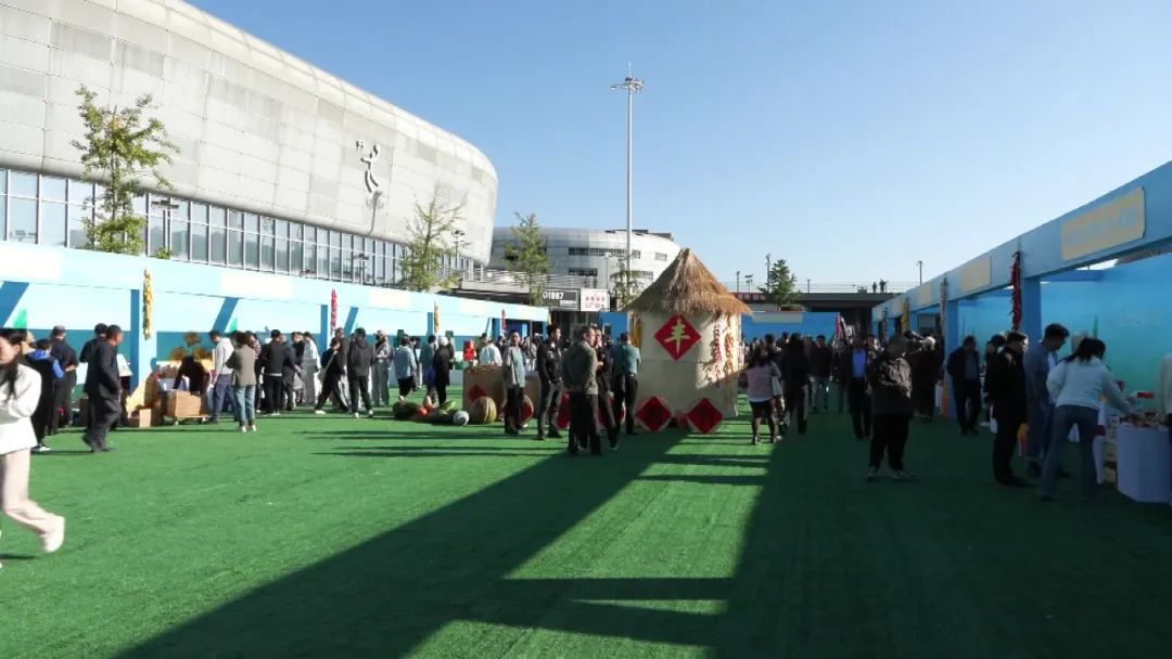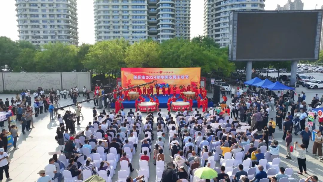 秋分时节,瓜果飘香粮满仓,现在我们就来到了2024年中国农民丰收节的河北主会场——衡水武邑县。此次活动也是分为了六大功能展区,有服务三农展示区、乡村振兴五色创意展区,还有丰收市集农产品产销区。那现场的农民们不仅带来了极具乡村特色的歌曲舞蹈、民俗表演,也带上了他们的特色农产品,跟大家一起分享丰收的喜悦。