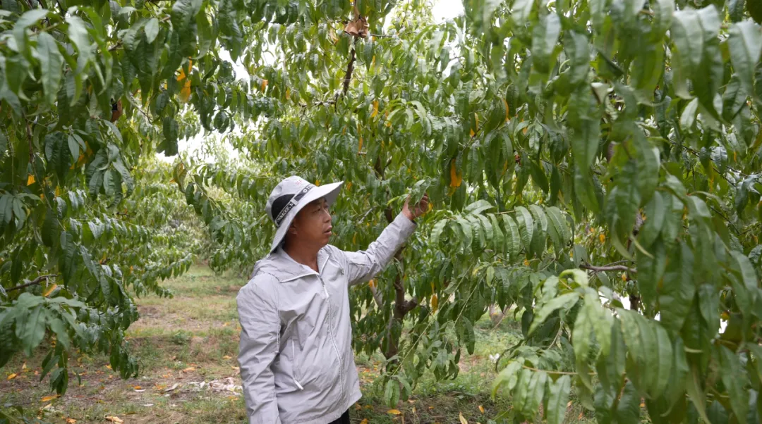 全面推进乡村振兴,既要村庄美,也要百姓富、产业兴。北师村积极调整农业产业结构,引导村民发展特色水果种植,促进村民增收致富。在北师村的桃园里,今年的桃子已经销售完毕,桃园负责人张建勇正在察看桃树的生长情况,为接下来的果树管理做准备。张建勇介绍,他种植了70亩的桃子,每亩产量3000斤左右,经济效益很可观。