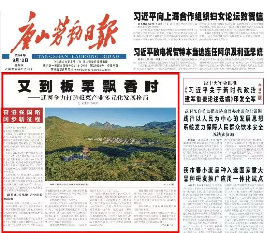 改革开放以来,质朴勤劳的迁西人借“栗”发力,经几代人接续奋斗,如今的栗乡群山已有板栗树75万亩、5000万株,常年产量8万吨,迁西成为京东板栗的核心产区和全国最大的板栗出口基地,板栗产业产值突破25亿元,全县栗农因栗人均增收4000多元。