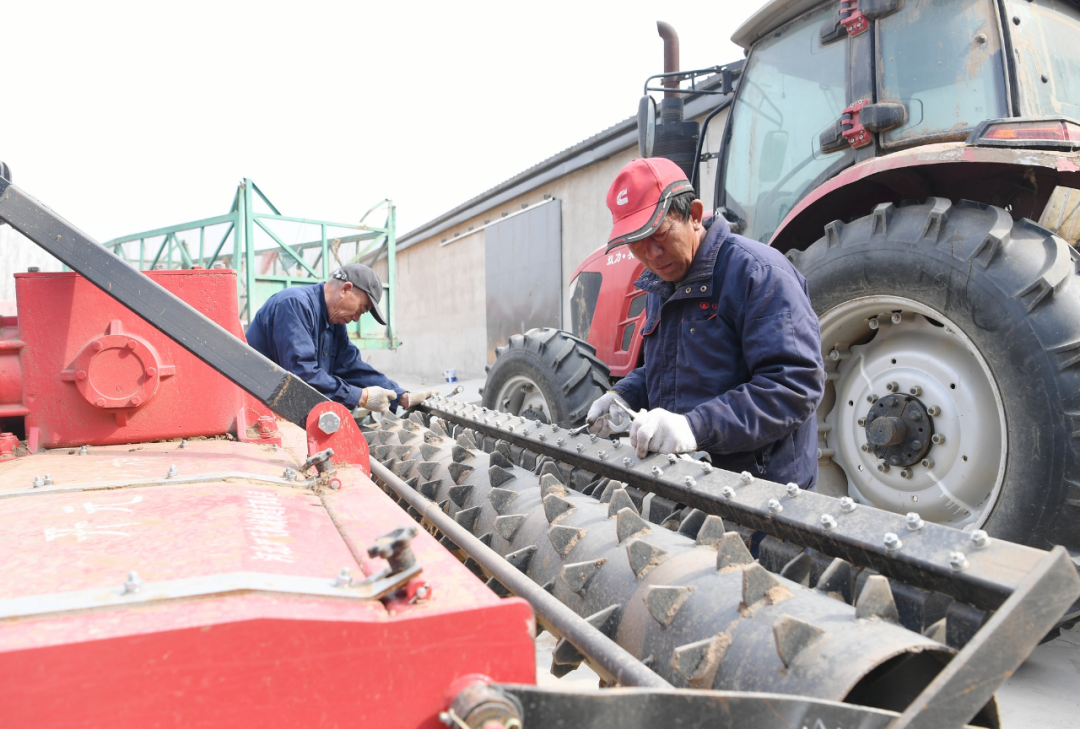 趁着空闲时间,定州市信联农机专业合作社负责人王中见正在对自家装上北斗辅助驾驶系统的播种机进行检修、保养,对机械出现的各种问题逐一排查,避免因出现机械故障而耽误生产进度。