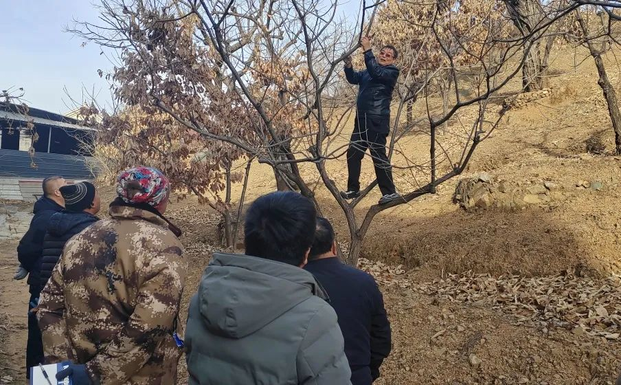 集中授课,助学立才强技能。理论课堂上,老师以培育本土人才为核心,深入浅出阐述栗树嫁接的基本原理、关键技术要点及病虫防治科学方法,着重讲解了板栗成熟过程中剪枝技巧、水肥管理等内容,为学员们呈现了一场既深刻又接地气的专题教学盛宴。 现场教学,实地操练增效果。遵循需求与实践导向相结合的教学原则,老师与栗农们前往板栗种植现场,就嫁接技术方案进行深入地交流与探讨,在老师示范和指导下,栗农们纷纷动手实践,亲身体验栗树嫁接的全过程,巩固理论知识,体会嫁接技术在提升板栗产量与品质方面的关键作用。