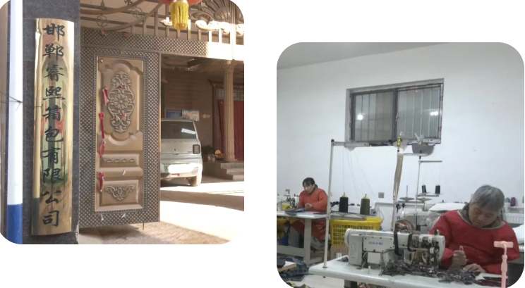我们睿熙箱包公司成立于2017年,现有4个车间,60个工人,我们是自产自销为一体的一个公司,带动宝妈轻松就业,让她们在家门口有钱可挣,有班可上。